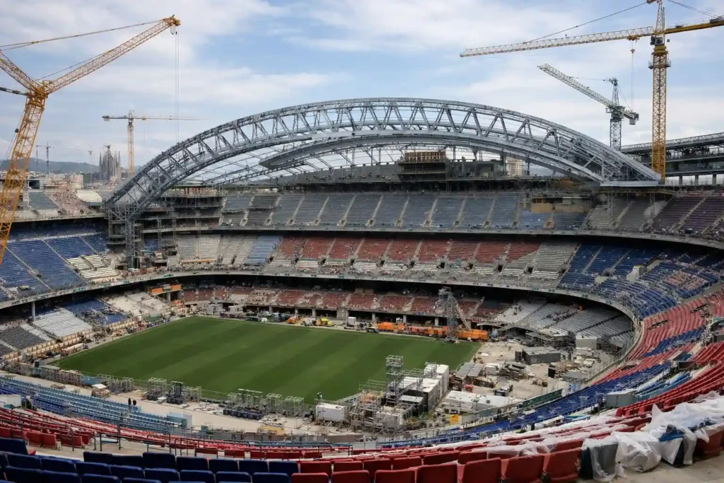 La previsión oficial sitúa la finalización de la estructura principal a lo largo de 2026, mientras que elementos clave como la cubierta integral, los acabados definitivos y varias áreas comerciales no estarán plenamente operativos hasta bien entrado 2027. Es decir, el club convivirá durante varias temporadas con un estadio a medio gas, algo inédito en una entidad que siempre ha presumido de planificación y solvencia institucional.