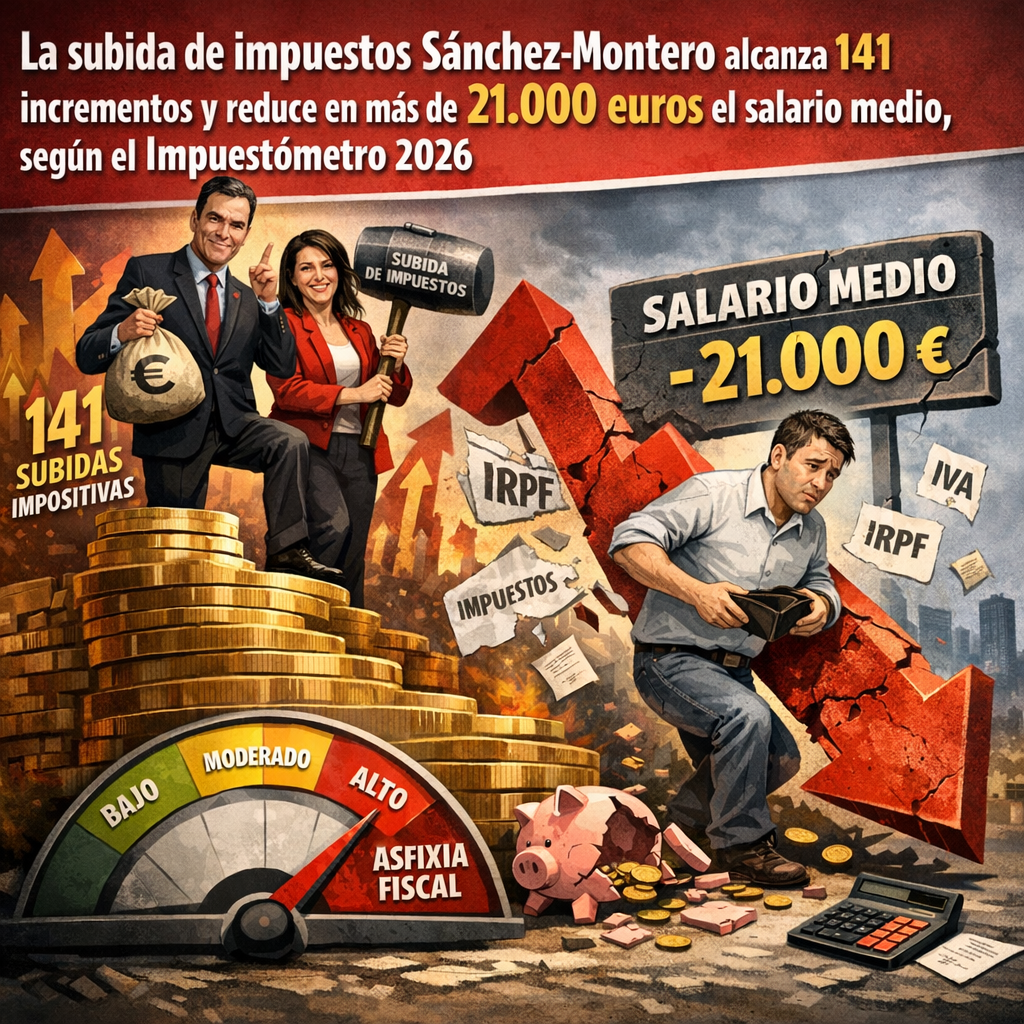 Subida impuestos Sánchez Montero. Ese es el eje central del último informe fiscal que analiza el impacto de la política tributaria en España desde 2018. Según los datos del Impuestómetro 2026, elaborado por el Instituto Juan de Mariana, la carga fiscal total ya absorbe el 53,6% del coste laboral medio, dejando al trabajador con menos de la mitad de lo que realmente paga su empresa.