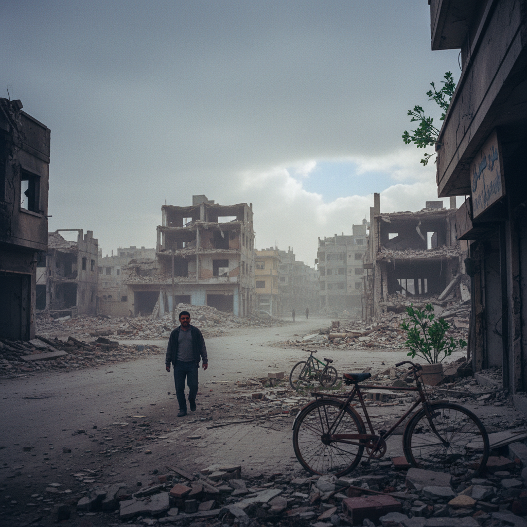 La obra ‘We Didn’t Start This War’ muestra escenas urbanas de Kiev, mientras que ‘Open World’ representa a un joven exiliado que controla un robot militar, simbolizando la desconexión y la nostalgia.