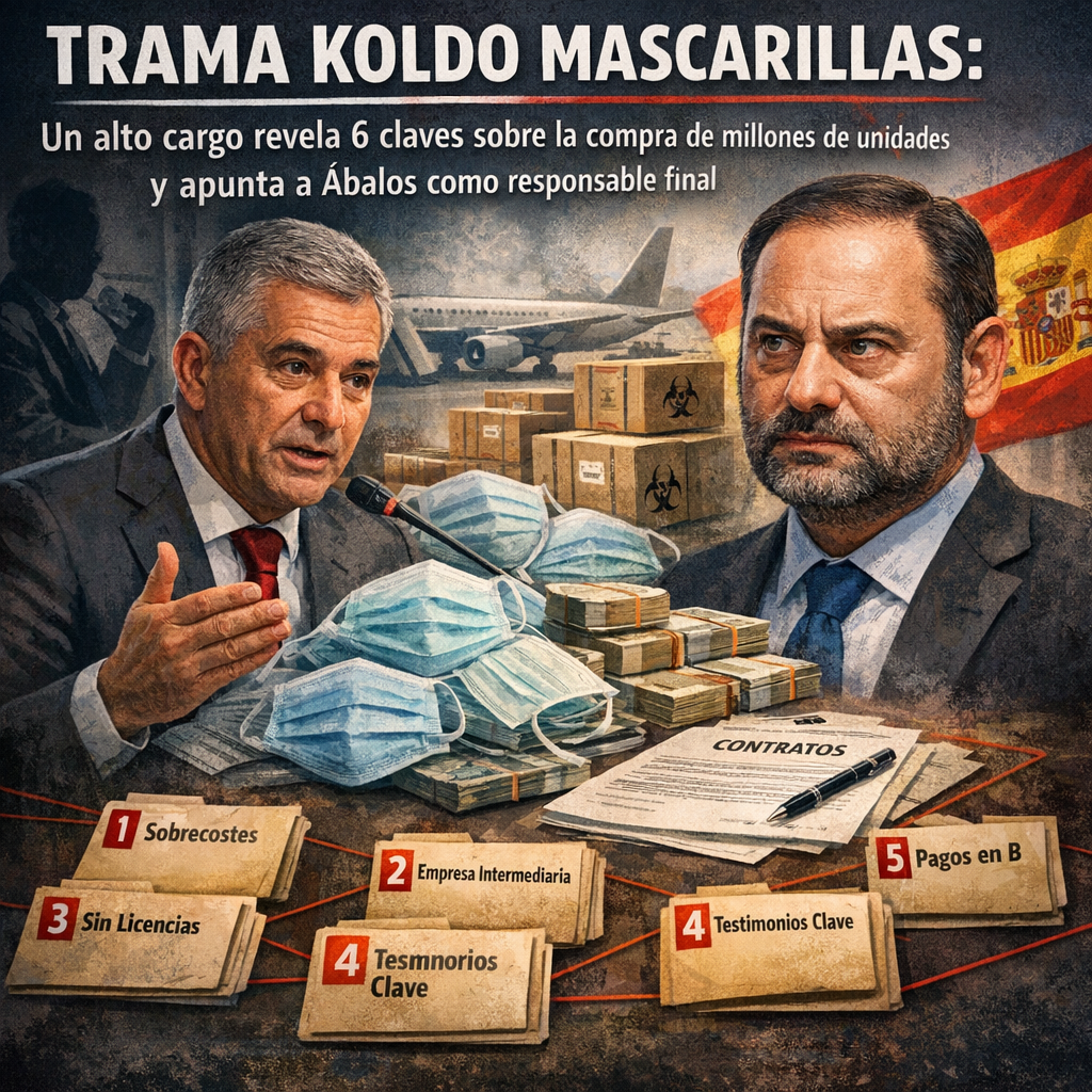 Trama Koldo mascarillas. Nuevas revelaciones han sacudido el caso tras la declaración en el Tribunal Supremo de un alto cargo del Ministerio de Transportes, que ha apuntado directamente a José Luis Ábalos como responsable final de decisiones clave en la adquisición de material sanitario durante la pandemia. El testimonio refuerza las sospechas sobre la gestión de contratos millonarios y el papel desempeñado por Koldo García.