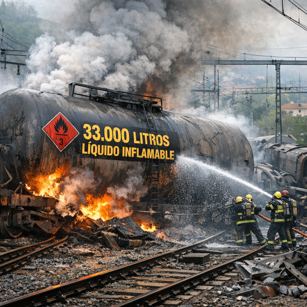 El tren descarrilado en Irún transportaba un depósito con capacidad para 33.000 litros de líquido inflamable, una circunstancia que ha generado inquietud política y social tras conocerse los detalles del incidente ocurrido en el barrio de Belaskoenea. Aunque el convoy no llegó a volcar ni provocó daños estructurales graves, el hecho de que transportara mercancías consideradas peligrosas ha abierto un intenso debate sobre la transparencia informativa y los protocolos de seguridad ferroviaria.