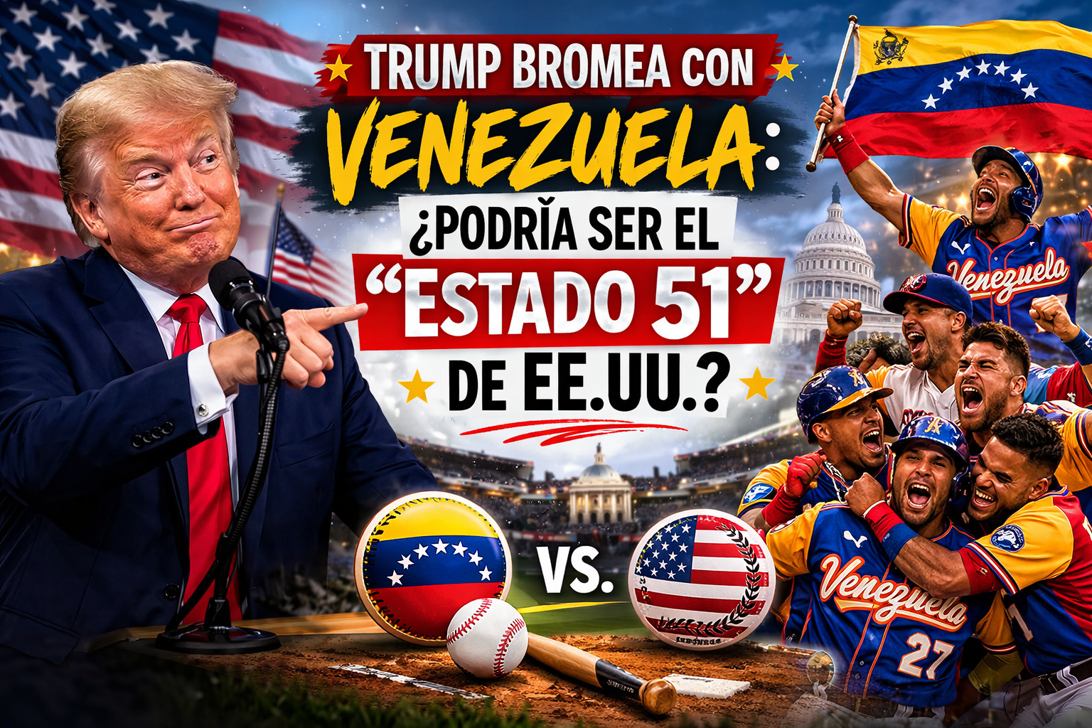 En conclusión, la broma de Donald Trump sobre Venezuela y su posible “estado 51” combina humor, deporte y política, resaltando los cambios recientes en la relación EE.UU.-Venezuela y el protagonismo del país sudamericano en eventos internacionales como el Clásico Mundial de Béisbol. Esta situación refleja tanto el peso simbólico de Venezuela como la atención que sigue recibiendo por parte de Estados Unidos y del propio Trump, quien continúa marcando la agenda internacional con declaraciones polémicas pero estratégicas.