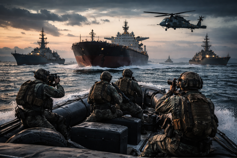La decisión de interceptar buques en aguas internacionales plantea un escenario de alta tensión jurídica y militar.
