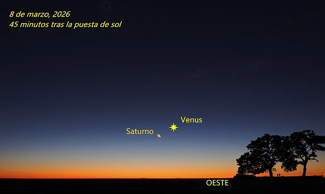 El mes comienza con una escena destacada: la conjunción entre Venus y Saturno, visible poco después de la puesta de Sol mirando hacia el horizonte oeste.