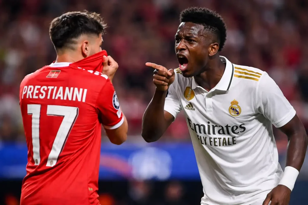 Tras marcar, el brasileño se dirigió al colegiado para denunciar que el argentino Gianluca Prestianni le habría llamado “mono”, un insulto de carácter racista. El árbitro activó el protocolo antirracismo de la UEFA y el encuentro quedó detenido durante varios minutos mientras se evaluaba la situación.