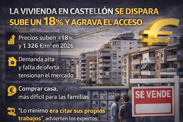 El precio de la vivienda en Castellón se acelera con fuerza y entra en el grupo de mayores subidas de España, mientras la falta de oferta tensiona el mercado.