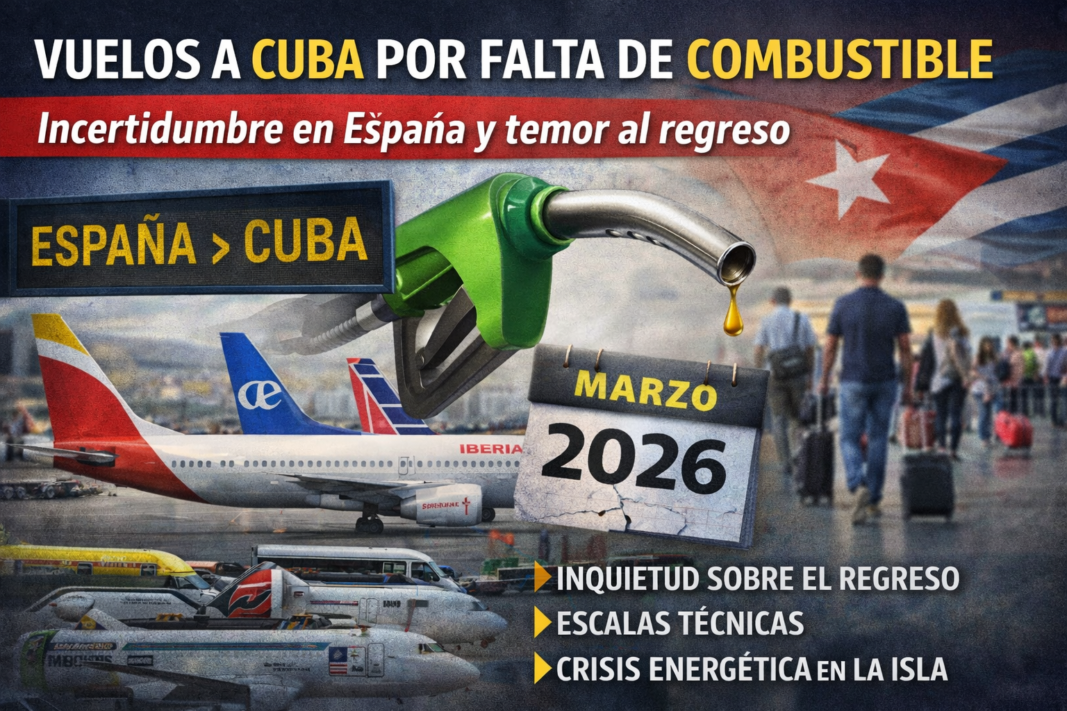 Vuelos a Cuba por falta de combustible están generando creciente inquietud en España tras los ajustes operativos anunciados por varias aerolíneas debido a la escasez de queroseno en la isla. Aunque las principales compañías españolas mantienen sus conexiones con La Habana, la incertidumbre sobre el regreso preocupa a decenas de pasajeros que temen quedarse varados en medio de una crisis energética que no deja de agravarse.