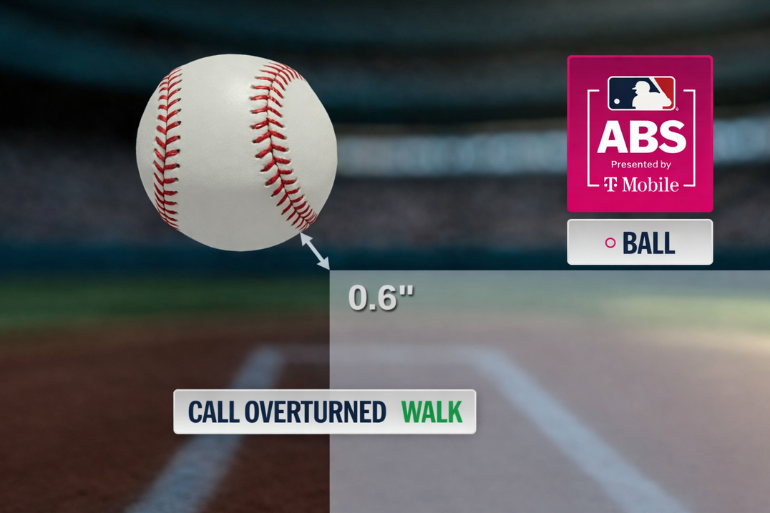 La revisión ABS confirmó su intuición: el pitcheo había quedado 0.6 pulgadas fuera de la zona de strike, cambiando el conteo a bola cuatro.